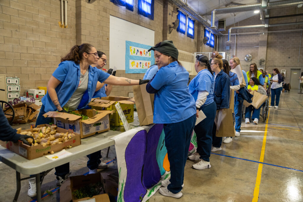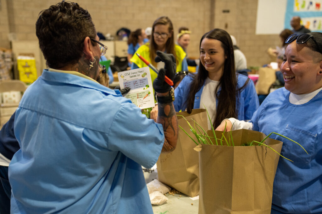 Land Together held its third Farmer’s Market at Central California Women’s Facility (CCWF) on May 17. In partnership with Impact Justice and Nutrition Policy Institute, this market was at the top of its game, with new elements for everyone.