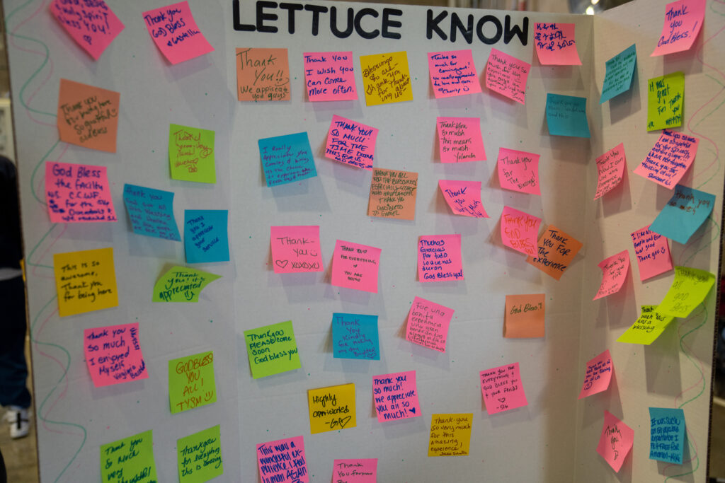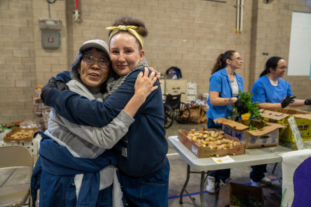 Despite this being the third market organized by Land Together, the gratitude of and impact on the residents was overwhelming. Resident Eileen Huber, who was arrested as a young adult, was in tears as she walked through and stopped at the different tables.